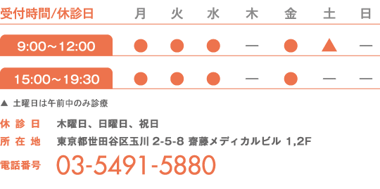 | 所在地 | 東京都 世田谷区 玉川 2-5-8 齋藤メディカルビル 1階 |